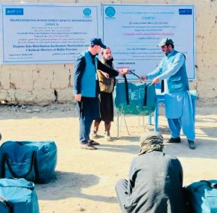 با حمایت مالی صندوق وجهی کمکهای بشری برای افغانستان (AHF) و همکاری تخنیکی مؤسسهٔ واک (OAWCK)، در ولسوالی دولتآباد ولایت بلخ به 340 خانوادهٔ نیازمند بستههای حفظالصحه توزیع گردید که در این بستهها 17 قلم اجناس مختلف شامل بود.