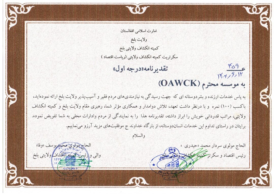 Regional Offices: Raees Abad St,Ln2,House # 10,Jov-e-Haft ,Jalalabad.
